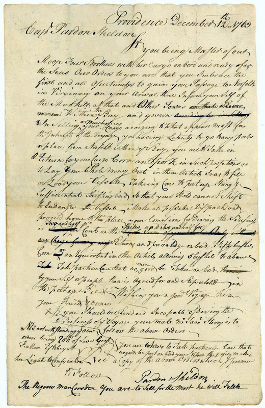 For those who want more of a challenge: Letter from Nicholas Brown to Esak Hopkins, 1764