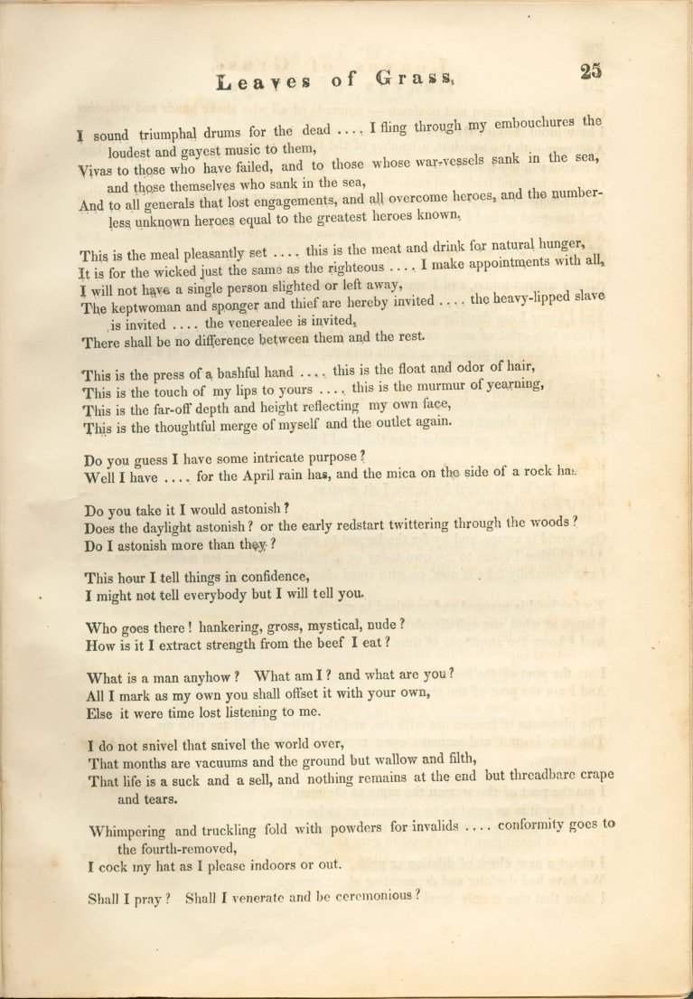 Walt Whitman's Song of Myself, 1855 (excerpt)